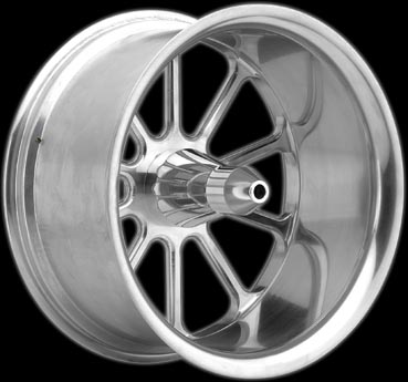Hyspeed one-piece aluminum wheels according to ETRTO motorcycle regulations. With these colossal wheels Beauty follows Function in its most perfect and purest way! Colossal wheels which are also super-light; they weight about 3-4 kg less than comparable wheels on the market. Thanks to an innovative manufacturing process the rear wheel has a stunning total width of 9" and a depth from the right wheel rim of 7.50": nobody ever did this before!!!