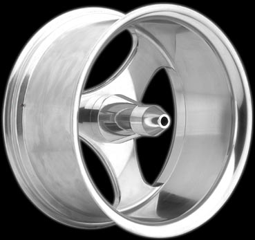 Hyspeed one-piece aluminum wheels according to ETRTO motorcycle regulations. With these colossal wheels Beauty follows Function in its most perfect and purest way! Colossal wheels which are also super-light; they weight about 3-4 kg less than comparable wheels on the market. Thanks to an innovative manufacturing process the rear wheel has a stunning total width of 9" and a depth from the right wheel rim of 7.50": nobody ever did this before!!!